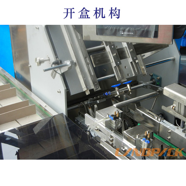 本機(jī)是集開(kāi)盒、推料、折耳、封盒為一體,適用于多品種,多規(guī)格的紙盒包裝機(jī),由PLC微電腦控制,自動(dòng)報(bào)警,故障提示。具有人機(jī)界面控制、操作簡(jiǎn)單、維護(hù)方便等特點(diǎn)。其封盒系統(tǒng)具有自動(dòng)開(kāi)盒、推料、折耳、封盒等功能,無(wú)須人手。整機(jī)接觸到彩盒部位全部采用優(yōu)質(zhì)不銹鋼和鋁材,表面進(jìn)行了拋光處理,外形美觀大方,不污染環(huán)境。