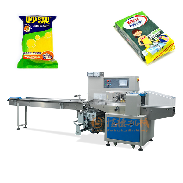 袋裝洗碗布/抹布包裝機(jī)器設(shè)備適合于百潔布、擦碗塊、清潔布、抹布、透明膠、卷紙、電工膠帶,隔離膠,塑料瓶、鐵板、藥品、日用品、工業(yè)零件、紙盒或托盤等各類有規(guī)則物體的包裝。
